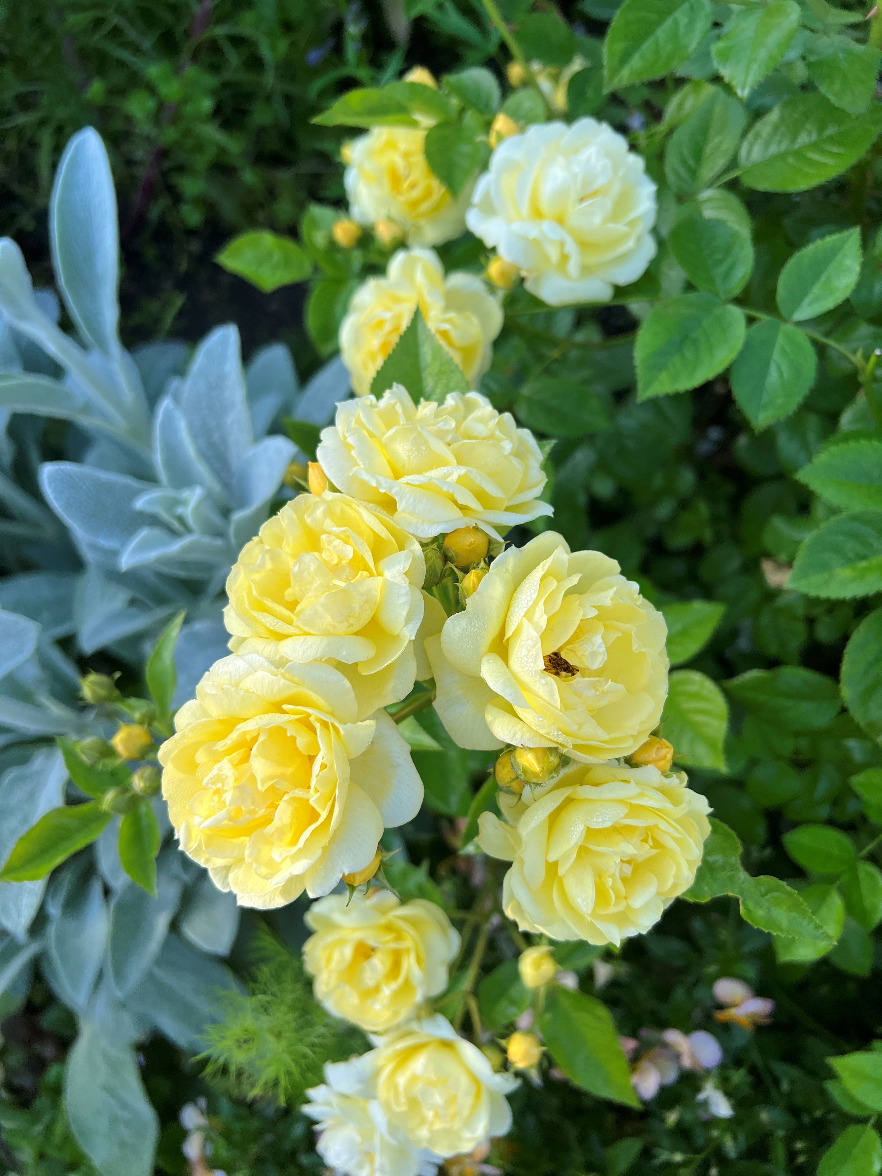 レモンイエローから淡いイエローの小さめの花が房で沢山咲き、コンパクトでこんもりとした樹形にまとまる。耐病性強く繰り返し良く咲き、ナチュラルなガーデンにも良く合う。名がフランス語で【小さな喜び】という意味。