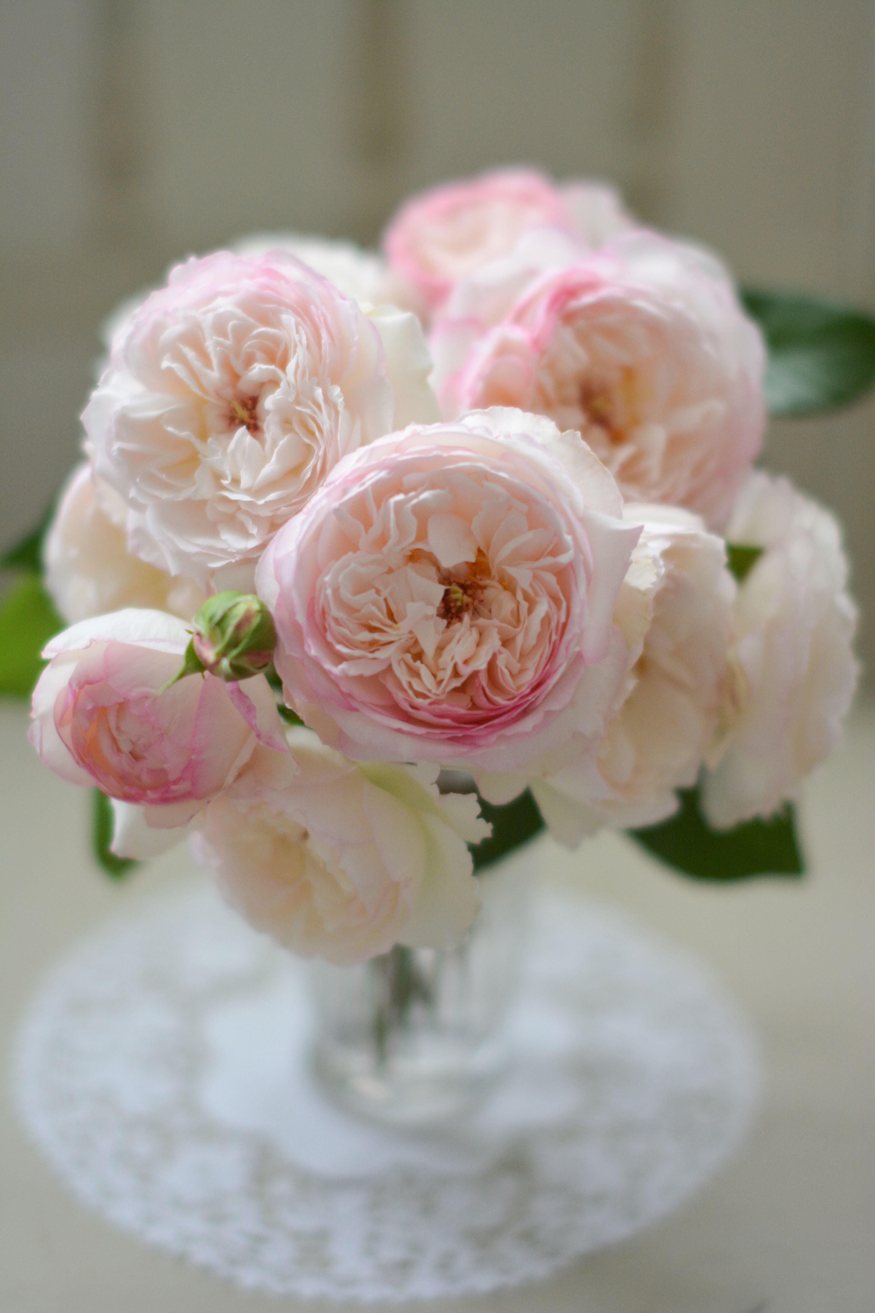 白に淡いピンクがかかるロゼット咲きで、ボタンアイに赤いしべが可愛いバラ。 どこか異国を思わせる‘石鹸’のような魅力的な甘い香りから、フランス語の「サボン」と命名。 半直立で大きくなりすぎない扱いやすい樹形です。
